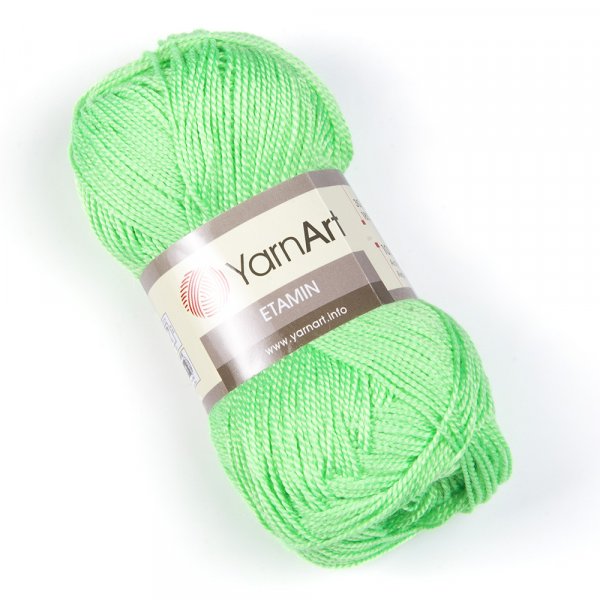 YarnArt pletací příze Etamin. Složení: 100% Akryl. Na dotek je nit příjemná, měkká s lehkým leskem. Vlákno je velmi dobře kroucené, při pletení i háčkování výrobků dobře drží tvar. Hodí se také vyšívání.Tato příze je atestována TZÚ pro děti do 3 let.