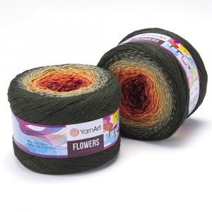 YarnArt pletací a háčkovací příze Flowers. Příjemná směsová příze splétaná ze čtyř nitek. Její barevné přechody - degradé - jsou středně dlouhé až dlouhé s jemnými záchvěvy barev do sebe. Krásné barvy nejlépe vyniknou na hladké jednoduché pletenině nebo na jednoduchých vzorech. Příze Flowers se skvěle hodí zejména k pletení nebo háčkování šál, šátků či plédů a ponč, svetrů, tunik, vest, čepic, ale také dek a polštářů! Barevná škála zahrnuje sladěné kombinace výrazných i neutrálních barev.Tato příze je atestována TZÚ pro děti do 3 let.