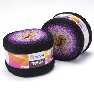 YarnArt pletací a háčkovací příze Flowers. Příjemná směsová příze splétaná ze čtyř nitek. Její barevné přechody - degradé - jsou středně dlouhé až dlouhé s jemnými záchvěvy barev do sebe. Krásné barvy nejlépe vyniknou na hladké jednoduché pletenině nebo na jednoduchých vzorech. Příze Flowers se skvěle hodí zejména k pletení nebo háčkování šál, šátků či plédů a ponč, svetrů, tunik, vest, čepic, ale také dek a polštářů! Barevná škála zahrnuje sladěné kombinace výrazných i neutrálních barev.Tato příze je atestována TZÚ pro děti do 3 let.