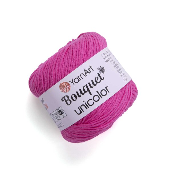 Bouquet Unicolor - je jednobarevná verze 100% přírodní, čistá klasická letní bavlna bez mercerace. Skládá se z mnoha tenkých nití stočených dohromady se středním zákrutem. Má širokou paletu barev- od jasných až po pastelové odstíny, které jsou stejné jako barvy užité při výrobě příze Bouquet a tak se mohou velmi pěkně užít v kombinaci.