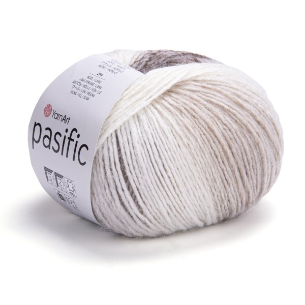 YarnArt Pacific příze 50 g. Pacific je kroucená směsová příze (20% Vlny, 80% Akrylu) ze dvou nití různých barev, které tvoří melír - jedna nit hlavní barvy a druhá nit ve vzhledu tzv. melanické batiky. Výsledkem je velmi originální zbarvení příze. Příze Pacific je krásně měkká a nekousavá, obsažená vlna dokonale zahřeje, přídavek akrylu pomáhá zachovat stálost tvaru a barvy výrobku. Tato příze má široké uplatnění zvláště při výrobě hřejivých oděvů a módních doplňků, jako jsou svetry, cardigany, vesty, ponča, plédy, šály, čepice, rukavice.Tato příze je atestována TZÚ pro děti do 3 let.